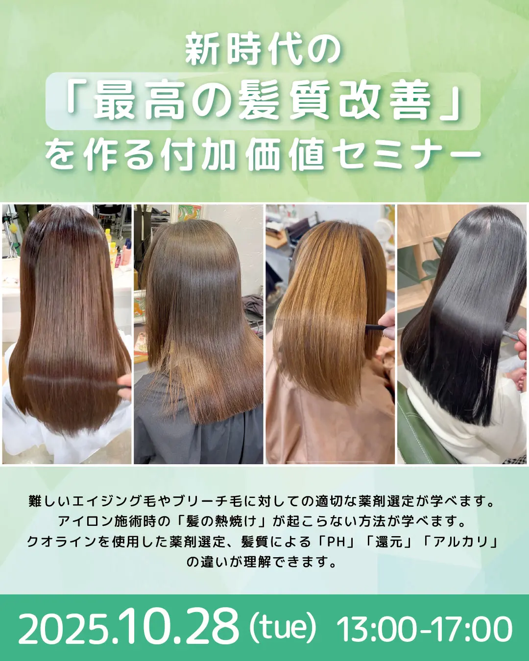 難しいエイジング毛やブリーチ毛に対しての適切な薬剤選定が学べます。
